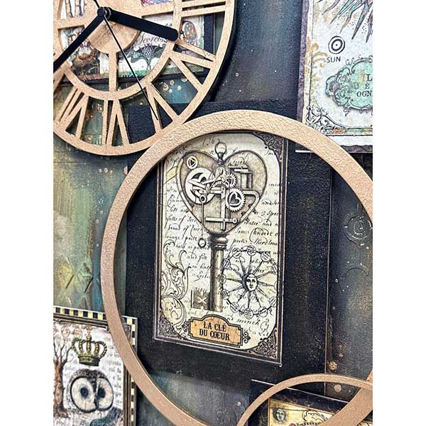 Работаем с текстурными пастами, трафаретами, патинами, восками, поталью и многим другим.