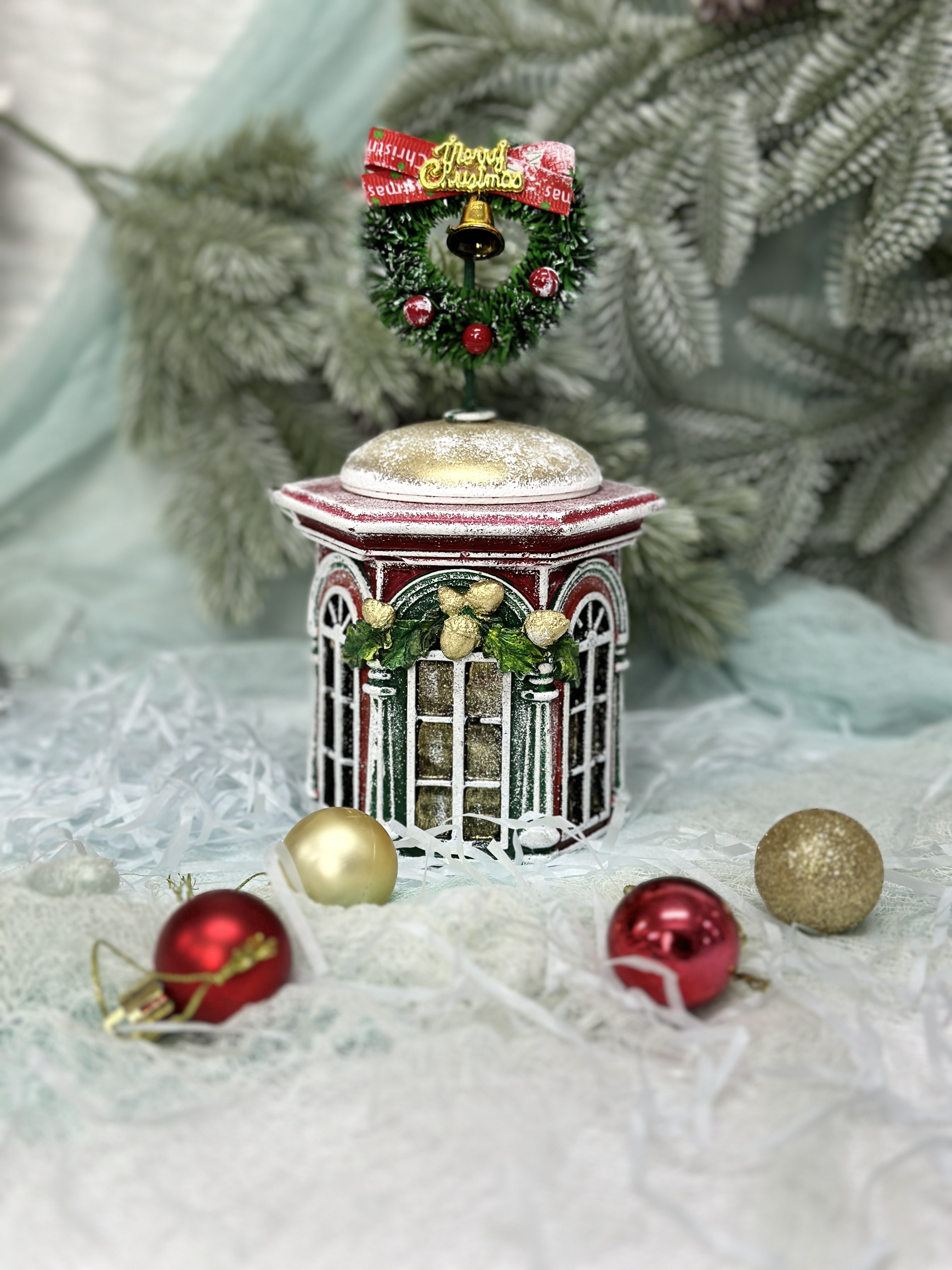 - Украсите домик в новогодней тематике: добавите гирлянды, купол и праздничные украшения, чтобы создать по-настоящему праздничное настроение.
