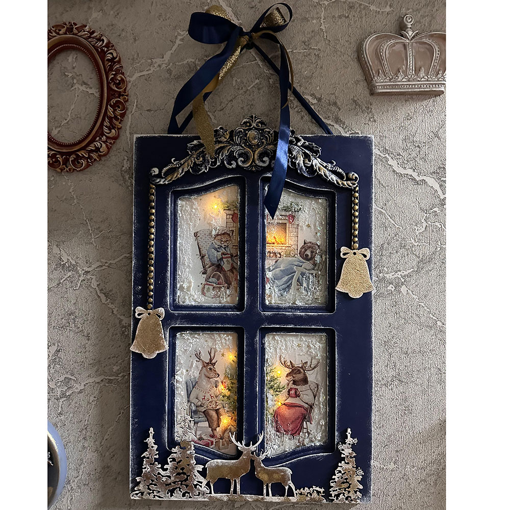 Насященный техниками мастер-класс по созданию новогоднего панно-светильника. Фасад высотой 50см, декорируем в различных техниках, поработаем с обьемными материалами, молдами, золочением, сверкающими пастами.