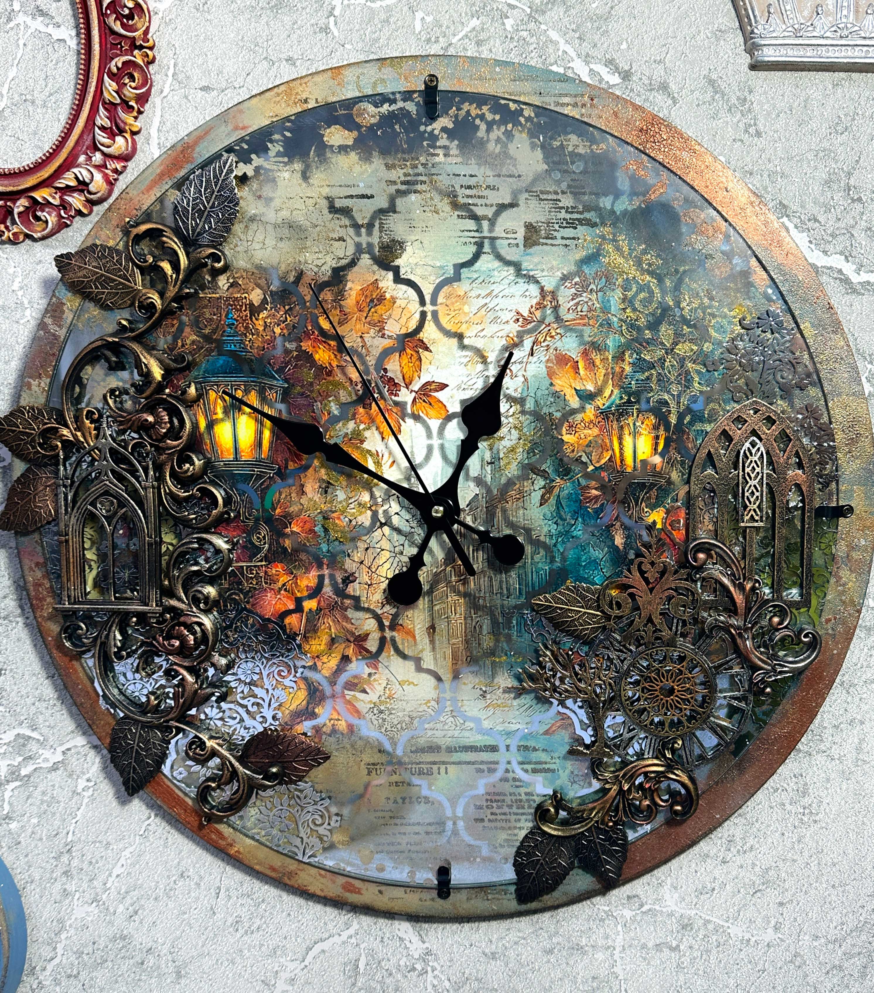 Итог — шикарные осенние часы с зеркалом, которые станут яркой деталью вашего интерьера.